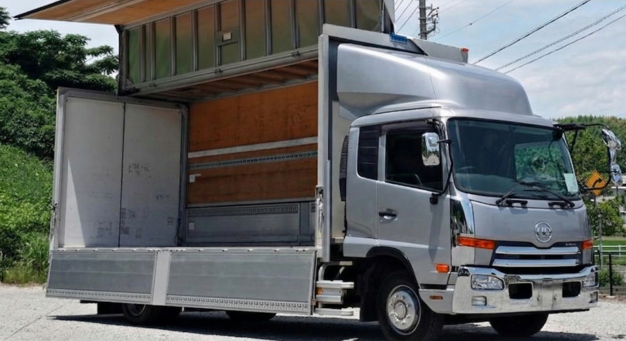 UDコンドル (積載6.4t) 大型機械や重量物の搬出入・移動を支える主力。パワーと積載量で、大規模な設備投資をバックアップします。 車両情報 荷台 幅2340 cm高さ2500 cm奥行き6200 cm ゲート 幅2400 cm奥行き1450 cm